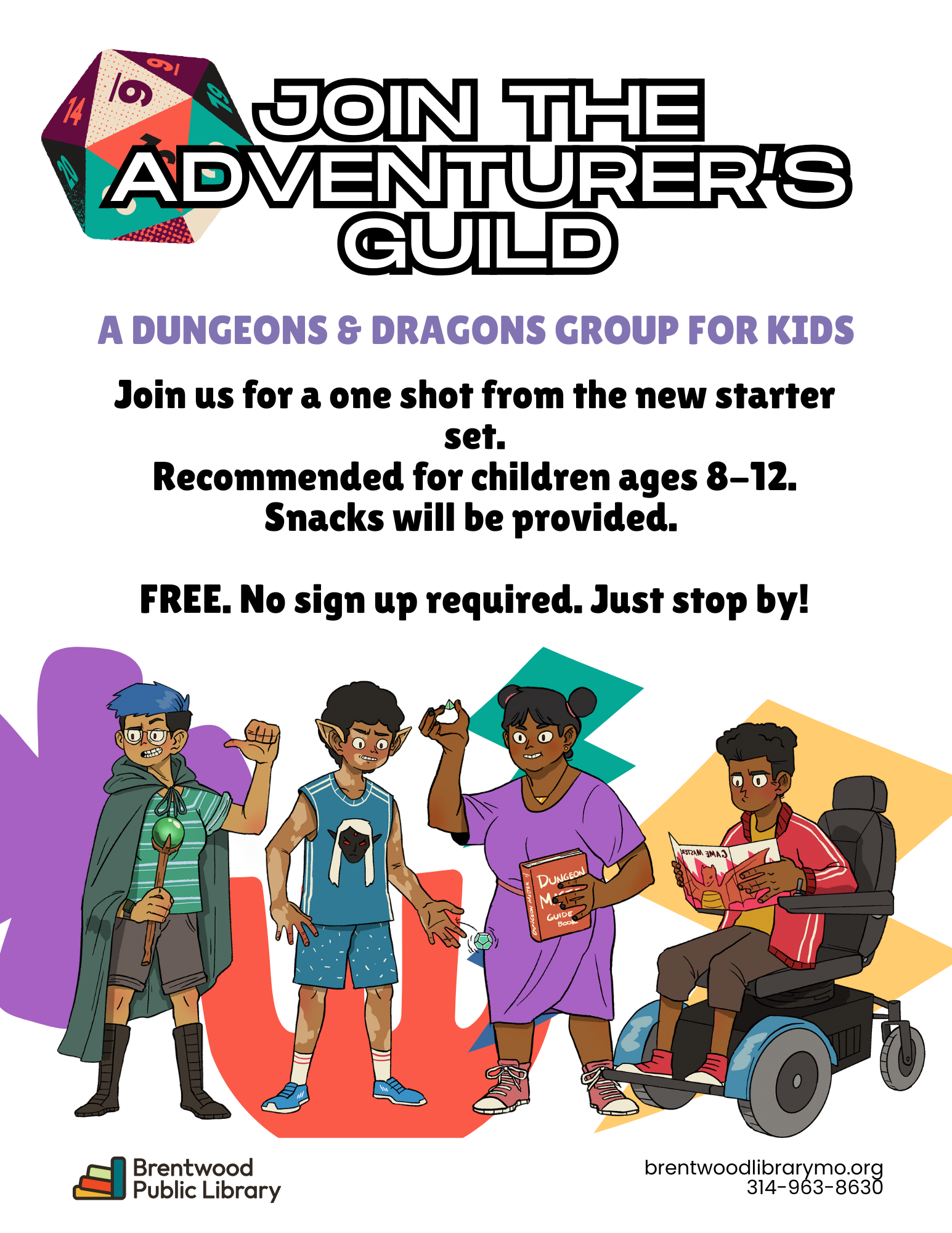 The Adventurer’s Guild is a Dungeons & Dragons club for kids. This club is for all experience levels — whether it’s your first time or your 100th time adventuring! We’ll do a one-shot game and have a lot of fun.
