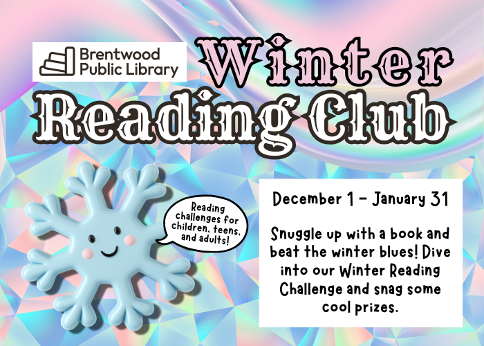 Winter Reading Club is a fun reading challenge for children, teens, and adults. Participants can easily track their reading through the Beanstack app. Download the Beanstack Tracker app from your phone’s app store, or visit brentwoodlibrarymo.beanstack.org.